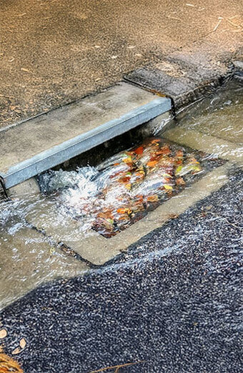 Urgent unblocking of stormwater pits and grated inlets clogged with leaves, dirt, or debris during storms to prevent backflow and surface flooding.