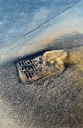 Immediate response to surcharge pits backing up or flooding under pressure, with rapid clearing to prevent yard or basement water entry during storms.